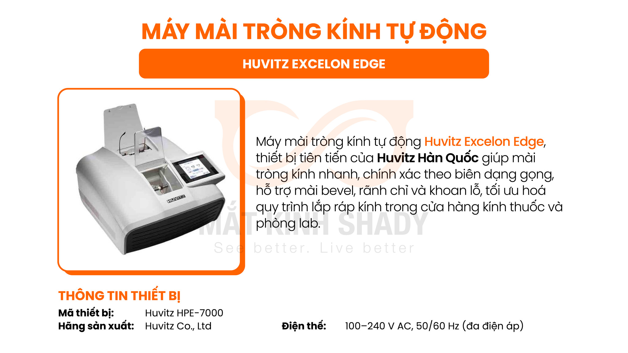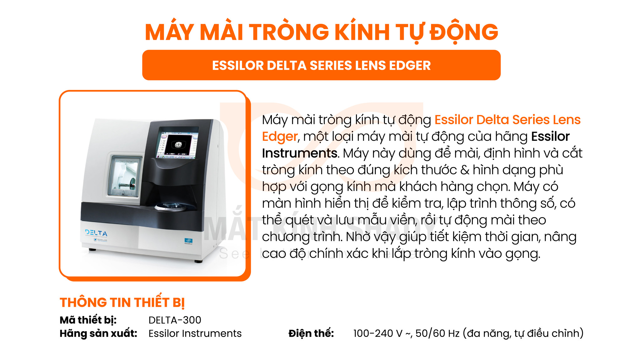 ✅ Thiết bị mài lắp cao cấp nhất hiện nay Es800 Essilor - Shady là một trong những cửa hàng đầu tiên sở hữu, đảm bảo độ chính xác cao và thời gian hoàn thiện nhanh chóng.