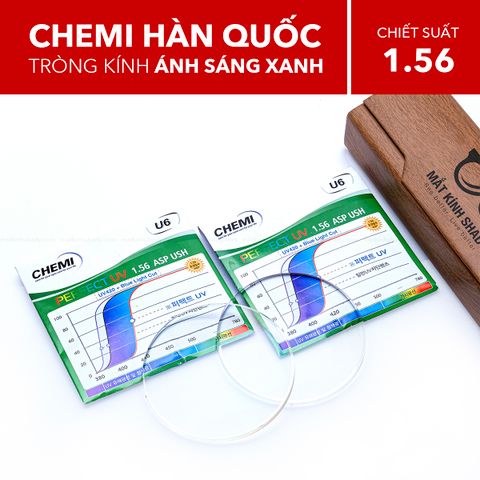 Tròng kính cao cấp Chemi U6 với lớp phủ chuyên dụng theo công nghệ hàng đầu Hàn Quốc, giúp ngăn ánh sáng xanh có hại từ ánh nắng mặt trời và các thiết bị điện tử như máy tính, điện thoại.