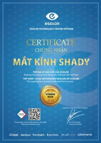 Được công nhận đầu tiên từ tập đoàn ESSILOR PHÁP